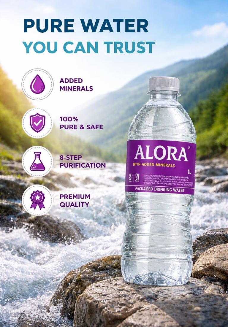 To ensure every bottle of Alora delivers clean, safe drinking water through careful processes, hygiene control, and uncompromising quality practices.